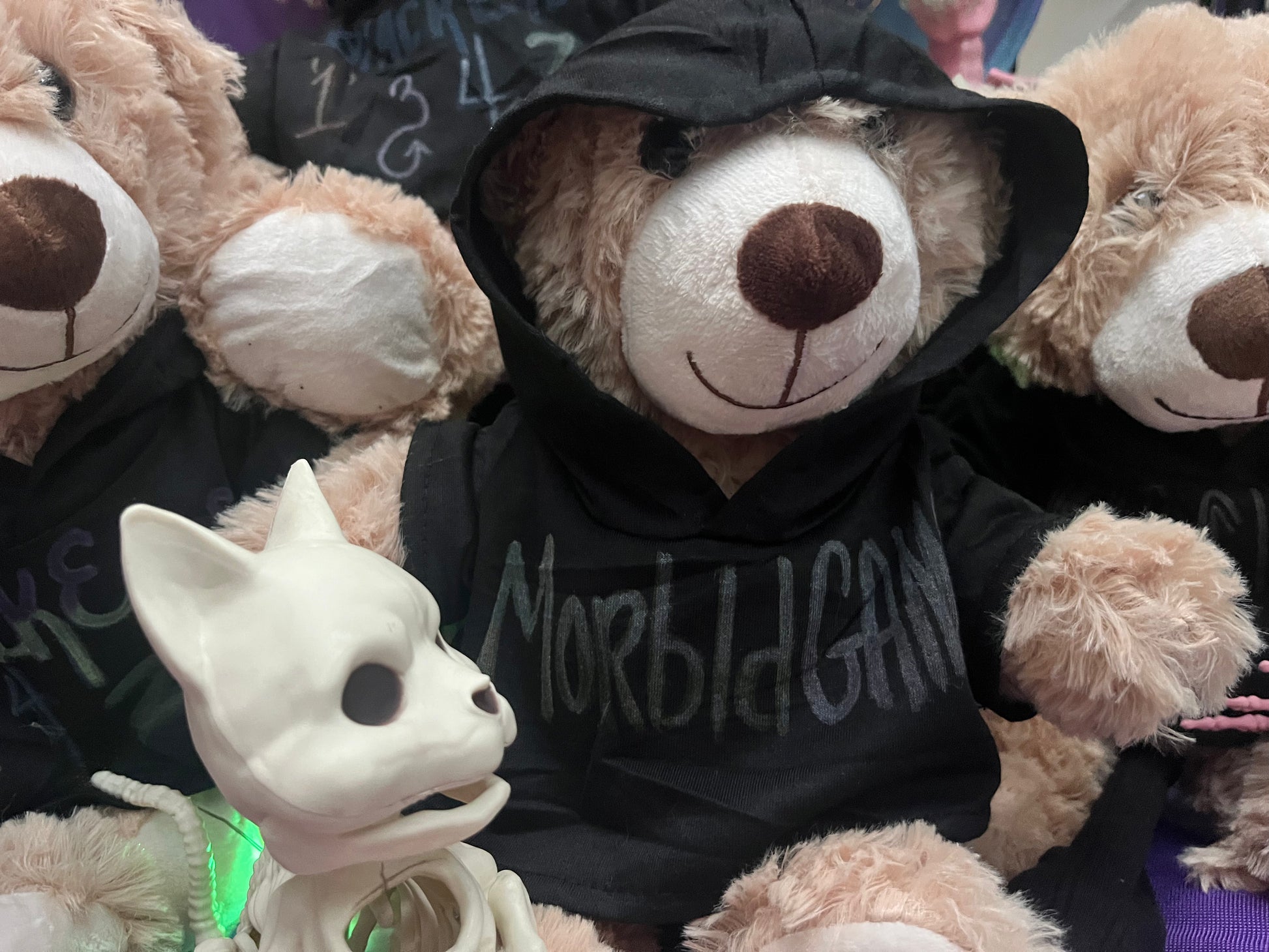 each Bear is one of a kind and no two are alike. The line is limited to 12 total and 11 are available for purchase. It will be random what design you get. Bears are 14” with custom black hoodie.
