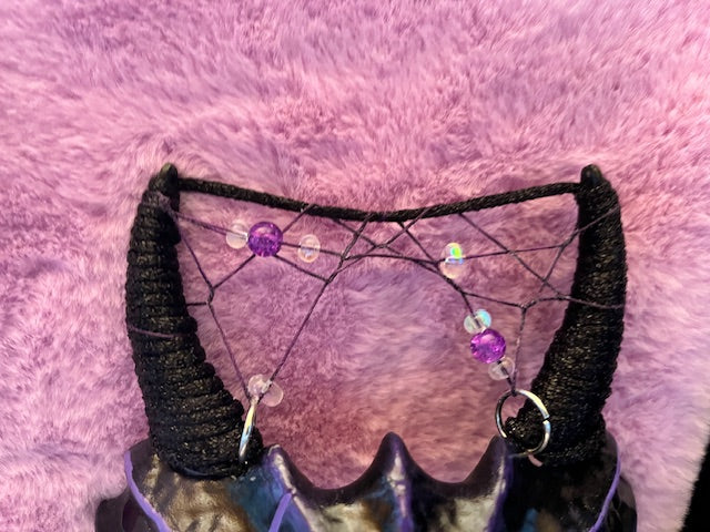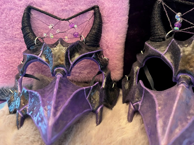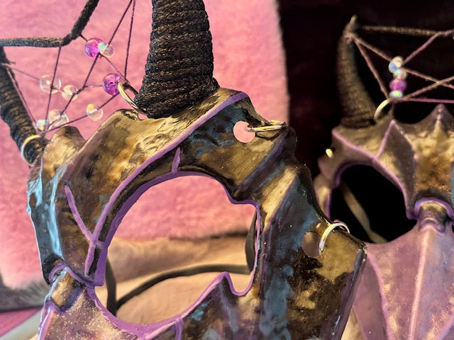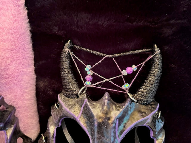 Ever wanted to show off your three energy, well you can this Halloween with the completely custom one of a kind Three mask. These masks were created using quality materials to create a unique and striking design. Each mask is one of a kind and has variations to it. From the dreamcatchers weaved between the horns to the moon bead hand selected for each one. Each mask is signed by The Grey Witch and Three on both the Mask and the tags. This particular mask is limited to 7 total and only 6 publicly available.